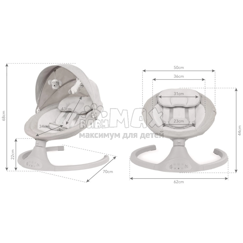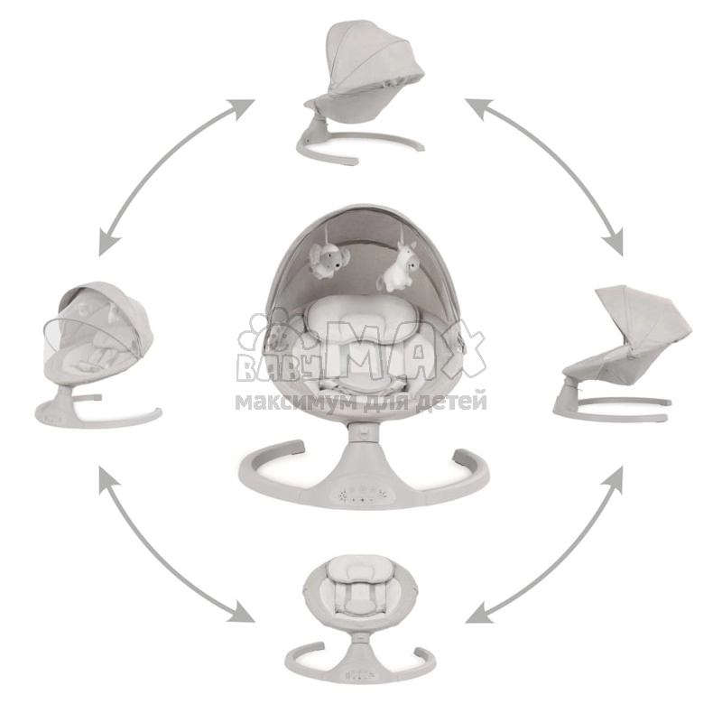 1. Имеет удобную панель управления, с помощью которой можно установить скорость раскачивания (пять скоростей), выбрать одну из 12 мелодий или установить таймер (8, 15 или 30 минут).