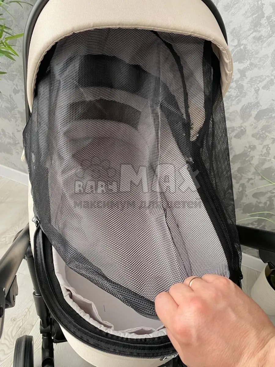 4. Капюшон люльки имеет вентиляционное окошко на молнии, для проветривания и бесшумный механизм опускания.