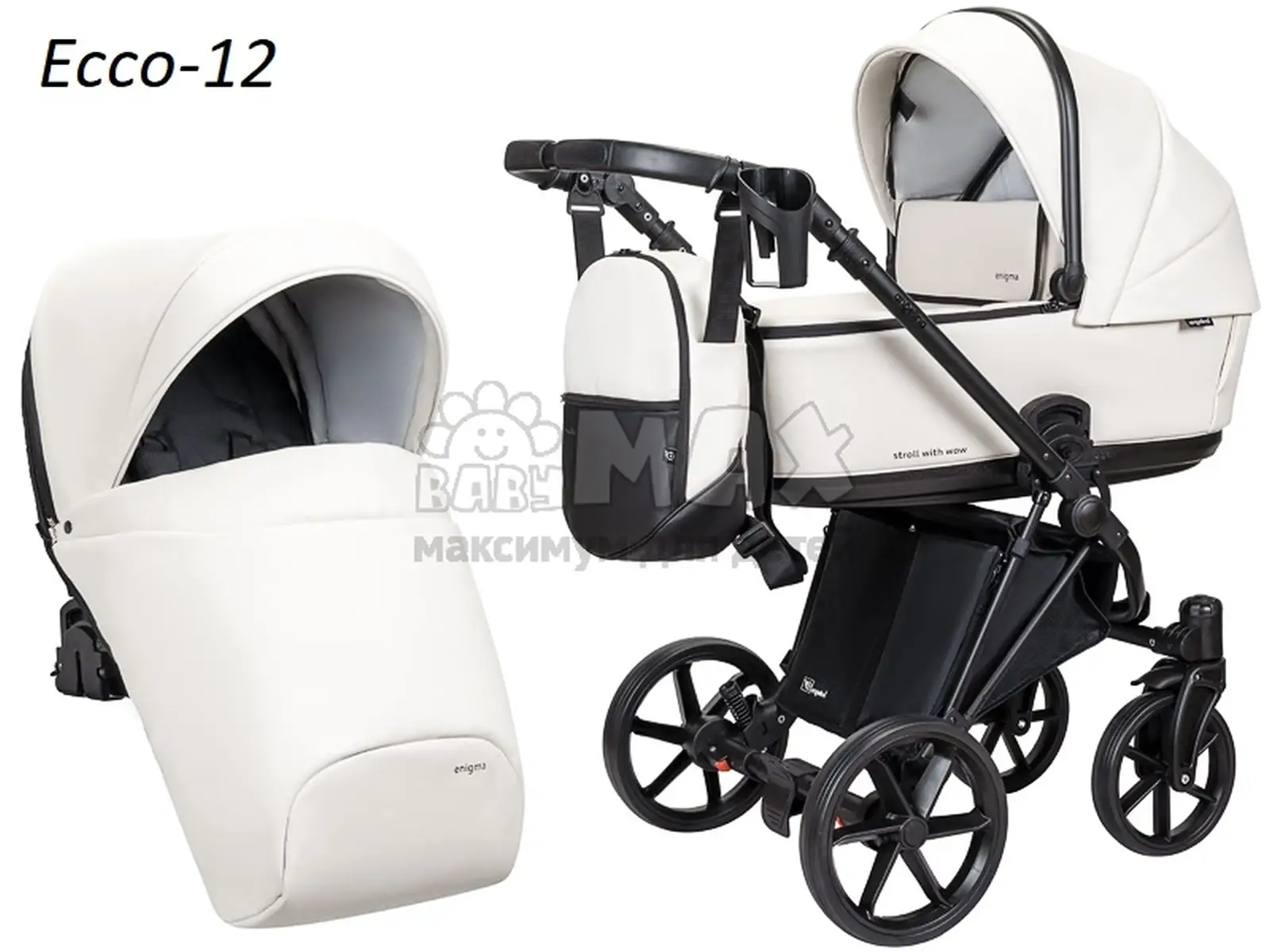 Коляска 2 в 1 Angelina Enigma Eco-12, екокожа Молочный