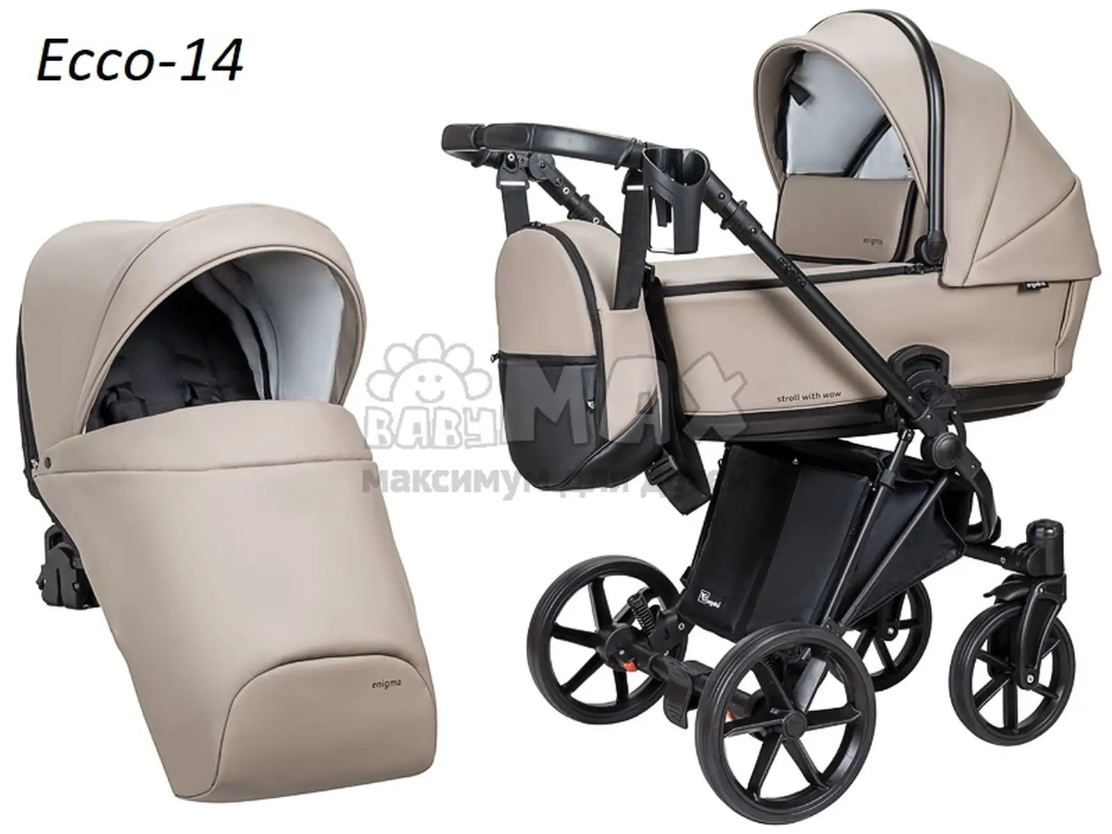 Коляска 2 в 1 Angelina Enigma Eco-14, екокожа Бежевый