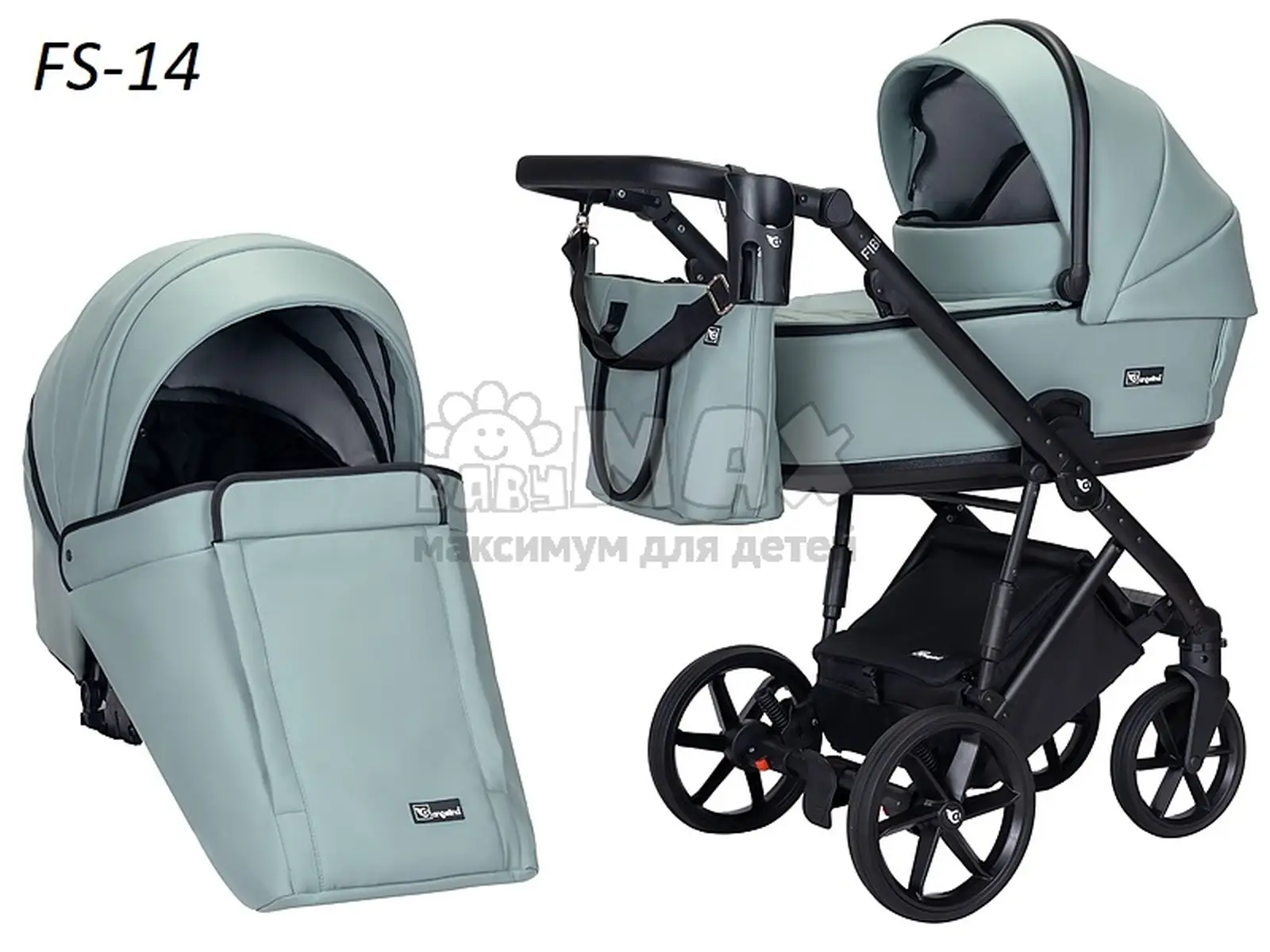 Коляска 2 в 1 Angelina FIBI SENSE FS14, екокожа Бирюзовый