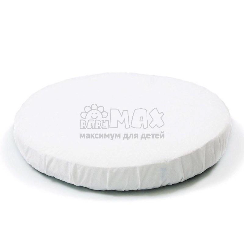 Непромокаемый наматрасник выполнен в стандартном белом цвете. Он станет отличным дополнением к матрасику в круглой кроватке, и защитит матрас от протекания.
